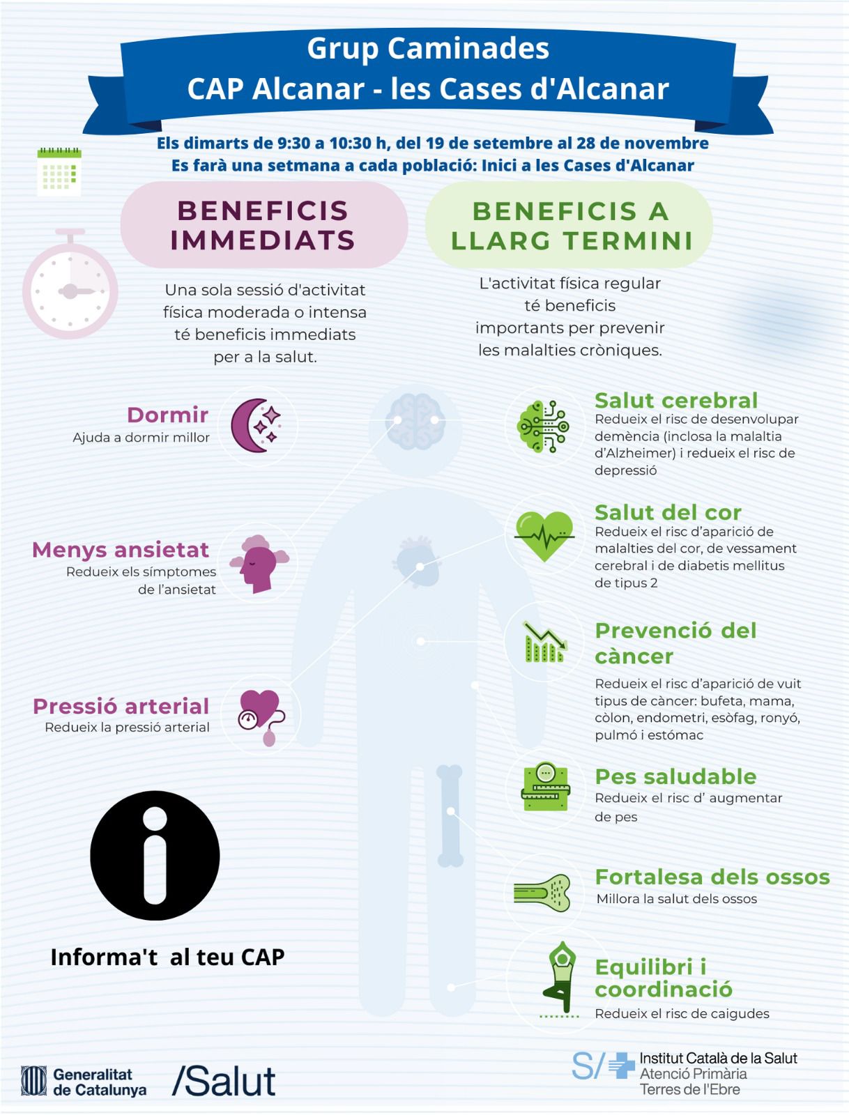 Les Referents de Benestar Emocional (REBEC) treballen per promoure el benestar emocional a la comunitat, també per la prevenció i detecció de situacions de risc o signes d’alerta de patiment mental. Es volen dur a terme diferents activitats en l’àmbit de comunitat com grups de benestar emocional d’adolescents i adults, grups de criança, de maternitat i part i postpart, etc. Cynthia del Pino, la REBEC del nostre municipi, explicava que una de les accions que tenen previstes per començar al mes de setembre és “un grup de caminades on es faran diferents rutes cada quinze dies fins al mes de novembre, amb sortida des de les Cases d’Alcanar i Alcanar. Amb aquestes caminades es vol promoure tant la salut física com mental, d’alimentació, etc.”