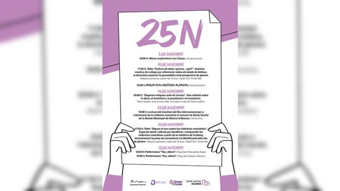 Amb un programa molt divers, que conté des de marxes exploratòries o tallers pràctics fins obres de teatre, al llarg d’aquest mes de novembre, l’Ajuntament d’Alcanar ofereix activitats per a tota la ciutadania en relació amb el Dia Internacional per a l’Eliminació de la Violència contra les Dones, que se celebra el pròxim dimarts 25.