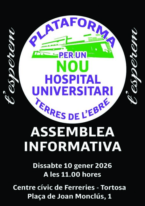 De totes aquestes coses i de més volem parlar-vos en el marc de la propera Assemblea informativa que la Plataforma per un nou hospital Universitari ha convocat per al proper 10 de gener del 2026, vint anys després d’una promesa que, ara per ara, no s’està complint. Us esperem per explicar-vos quin és “l’estat de la qüestió”, per compartir amb vosaltres els nostres neguits, preocupacions i projectes envers un futur que volem diferent.