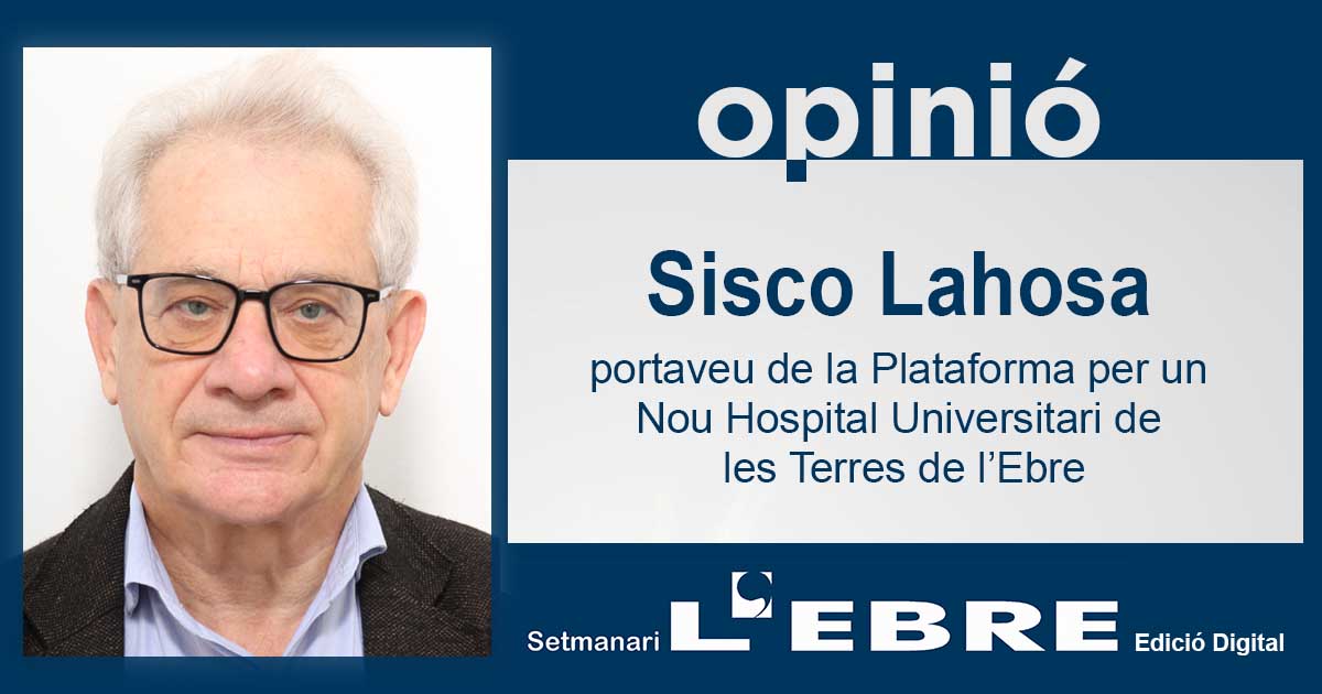 En l’editorial del darrer número d’aquest setmanari —12/XII—, a la pàgina 5, es planteja, de manera prou assenyada, el dubte que sempre ens ha acompanyat als membres de la Plataforma per un nou hospital universitari a l’hora de fer compatibles i creïbles dues realitats evidents, necessàries, però, lògicament, contraposades. El text al qual faig referència diu, literalment, així: “(…) la represa del projecte d’ampliació obri un nou i gran interrogant. Quin serà el futur del nou Hospital Universitari de les Terres de l’Ebre, previst al barri de Sant Llàtzer? I sobretot: amb una inversió important ja compromesa per a posar al dia l’actual hospital, la Generalitat destinarà els recursos suficients per a avançar simultàniament en la construcció del nou equipament?”