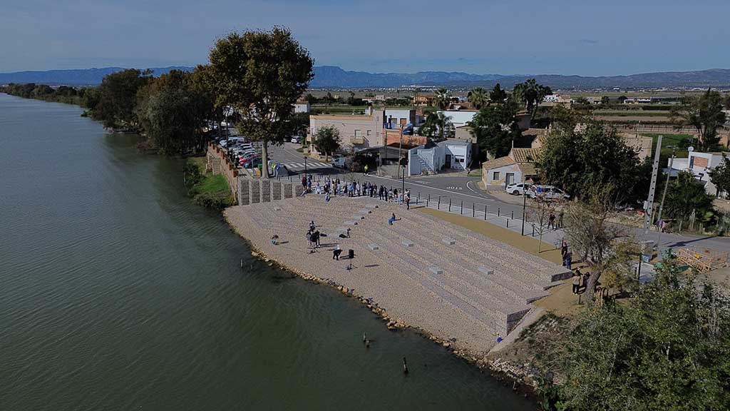 Aquesta actuació, amb una inversió total de 189.435,56 €, inclou la instal·lació d’unes graderies dissenyades per contemplar la ribera del riu, creant un espai de pausa i contemplació integrat a l’entorn. A més, l’obra també permet millorar la continuïtat del passeig fluvial, amb la instal·lació de fanals, arbrat, papereres i aparcaments per a bicicletes.