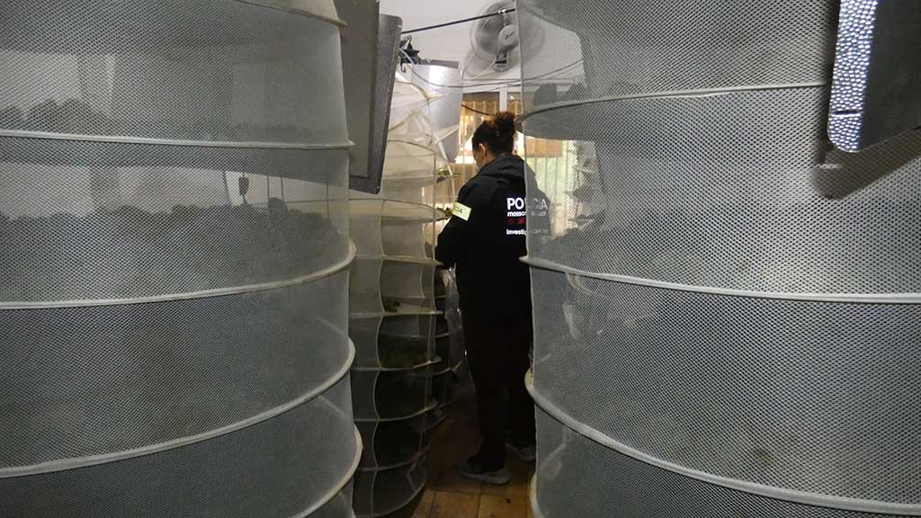 A la primera estança s’hi van localitzar dues habitacions amb plantes de marihuana en diferents fases de creixement: trenta-tres unitats plantades en testos individuals i setanta-set testos ja recol·lectats amb les plantes tallades. En una altra habitació hi havia quaranta plantes més pendents de recol·lectar.