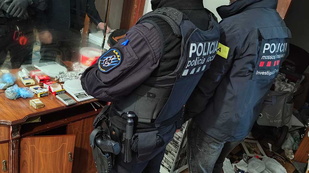 Un cop recollits els indicis necessaris, es va dur a terme una entrada i perquisició al domicili de l’investigat. Durant el registre es van localitzar diverses porcions de marihuana i d’haixix, tant en bosses com en embolcalls individuals preparats per a la venda, i també blísters de medicació, bàscules de precisió, un ganivet amb restes de substància vegetal i un matxet de grans dimensions, entre d’altres. A més, es van trobar 605 euros en efectiu fraccionats en bitllets de diferents valors.