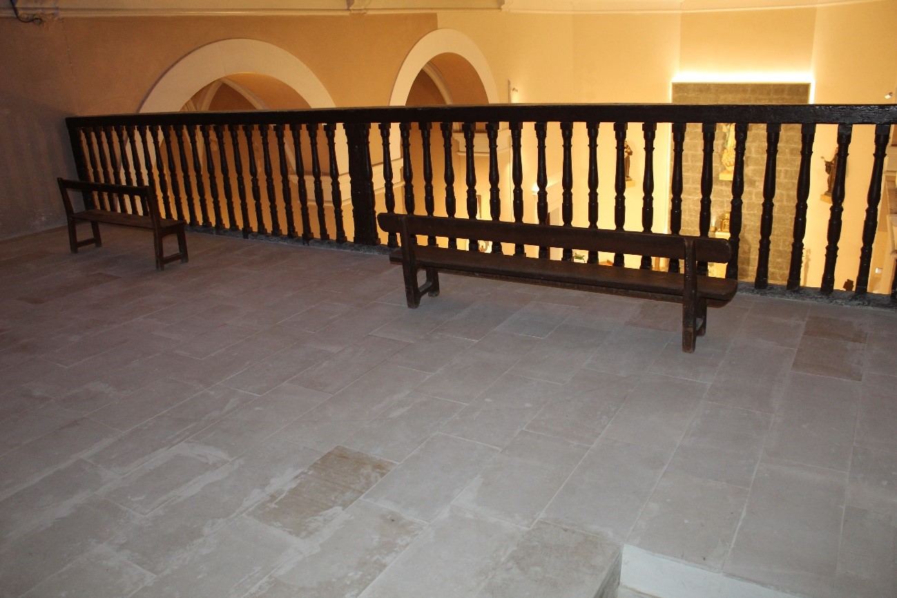 Encara més, s’han refet totalment les escales d’accés al presbiteri i al cor. En aquest darrer espai, després d’anivellar-lo, també s’hi ha instal·lat un paviment de peces de pedra d’Ulldecona o Sénia beix.