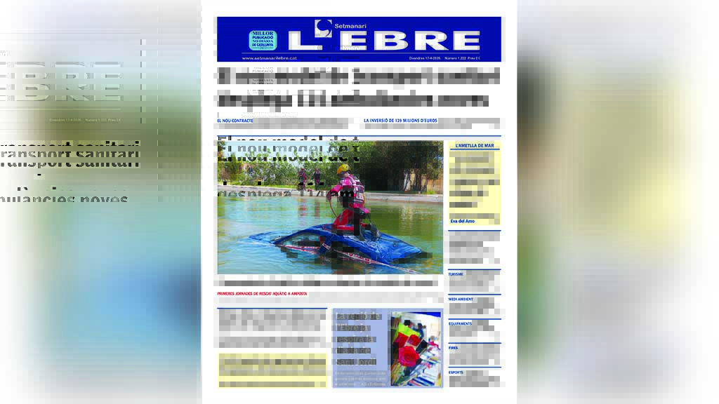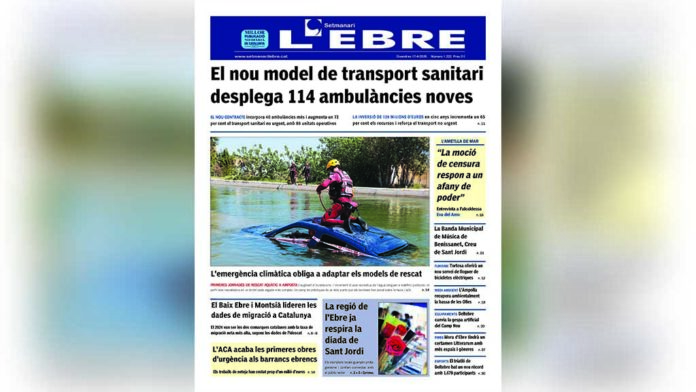 La portada de l’edició en paper número 1222 del Setmanari l’Ebre dedica el titular principal al nou model de transport sanitari que desplega 114 ambulàncies noves a la regió de l’Ebre. El nou contracte ha incorporat 40 ambulàncies més i ha augmentat un 72 per cent el transport sanitari no urgent, amb 86 unitats operatives.