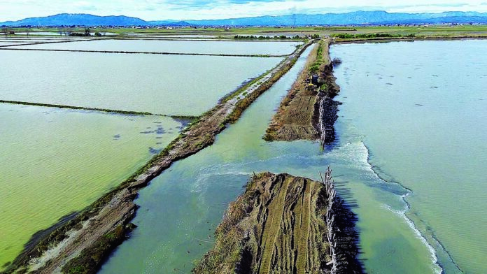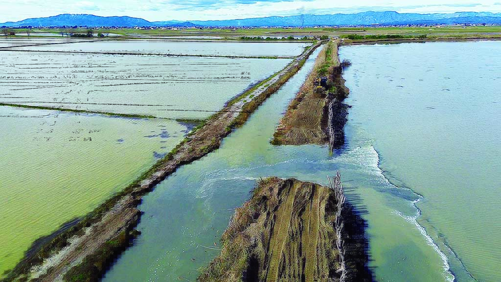 Les ratxes de vent de més de 140 quilòmetres per hora registrades el 14 de febrer han dixat afectacions arreu de les Terres de l’Ebre, però al Delta les pèrdues podrien ser milionàries. La borrasca Oriana va provocar el trencament de les guardes de la badia del Fangar i de la finca de Bombita, així com la del Canal Vell. Això ha provocat que l’aigua salada entre als arrossars.