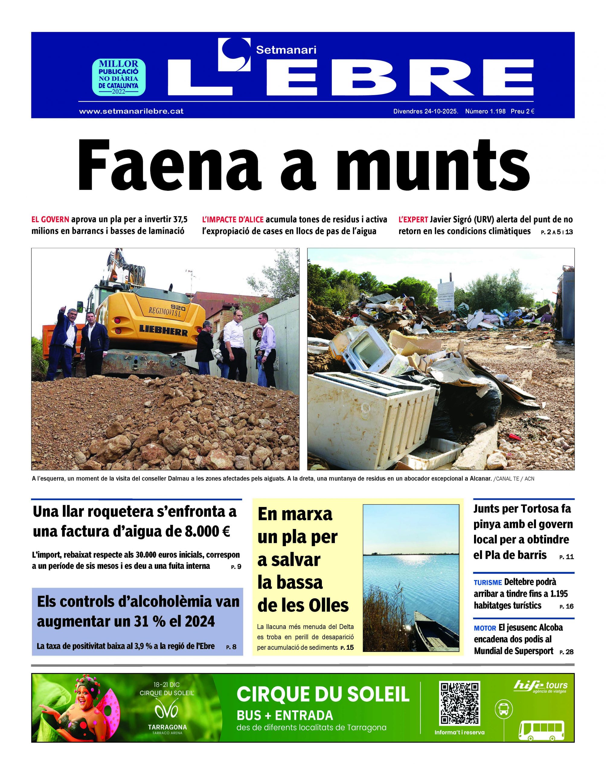 La portada en paper número 1198 del Setmanari l’Ebre torna a dedicar, com en el número anterior, el titular i les fotografies principals de portada a les conseqüències de la pertorbació Alice, ja que els municipis afectats encara recullen béns privats fets malbé i miren de reconstruir espais, esperant que les administracions superiors facen una aposta inequívoca per mesures estructurals i ajuts àgils.