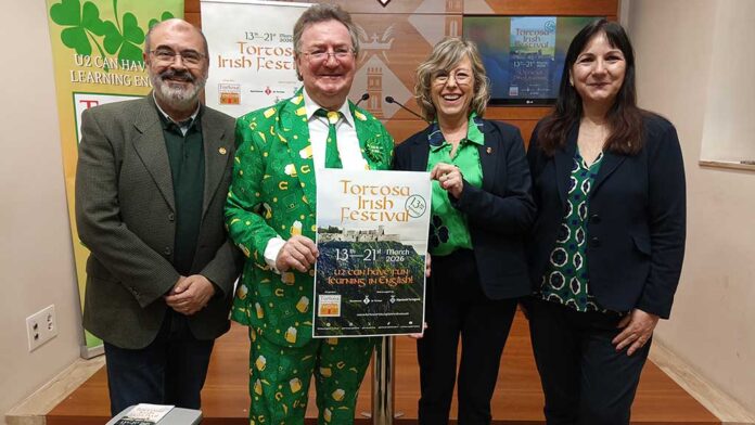 Tortosa serà l’escenari de la tretzena edició del Tortosa Irish Festival, que enguany fa un pas endavant amb un creixement important, tant en durada com en abast educatiu i social. El certamen amplia el seu calendari d’activitats i seran un total de nou dies, del 13 al 21 de març. “El Tortosa Irish Festival culminarà el dissabte 21 de març amb la ja tradicional nit de tapes al Mercat Municipal, que serà l’acte de cloenda del certamen“, ha anunciat l’alcaldessa, Mar Lleixà, qui ha comparegut acompanyada de la regidora de Turisme i Mercat, Sònia Rupérez, i de dos dels organitzadors del festival, Paul O’Riordain i Jordi Pellejà.