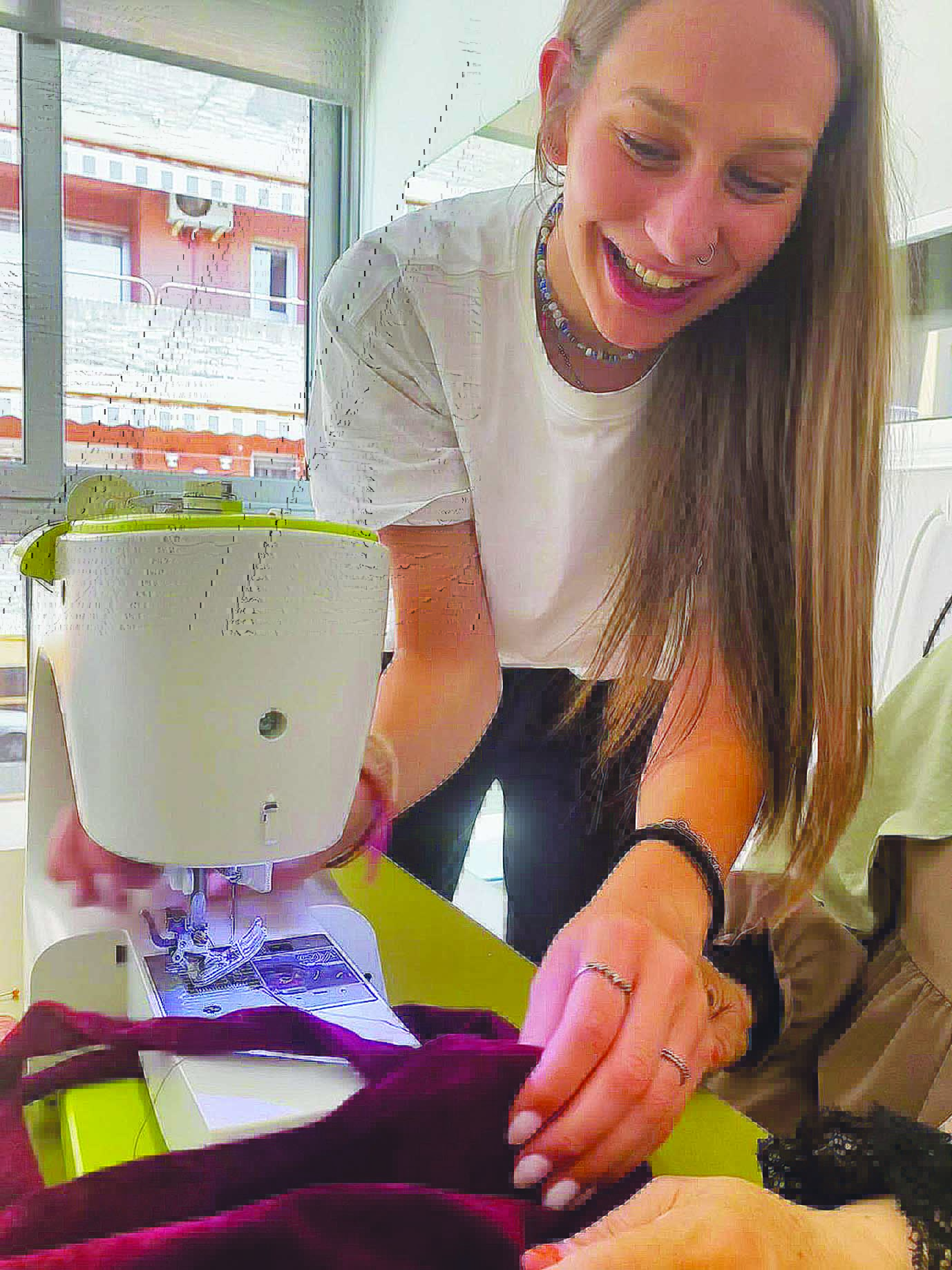 Emma Bovo ajuda a cosir un usuari d’Atzavara-Arrels. / Foto: Cedida