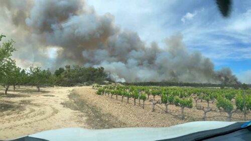 Els Bombers de la Generalitat treballen aquest dissabte a la tarda en un incendi de vegetació forestal a Batea (Terra Alta)