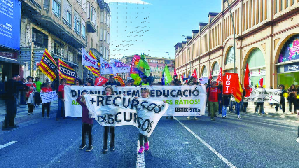 Els sindicats denuncien que el sistema educatiu arrossega encara les retallades del 2011 i que les negociacions amb el Departament estan “aturades”. Reclamen una baixada de ràtios, menys burocràcia, més personal per a garantir una escola inclusiva real i una millora salarial que compense la pèrdua de poder adquisitiu acumulada des de la crisi del 2008. “L’educació és un pilar fonamental i és una inversió de futur, esperem que la vaga d’avui faça reflexionar al Departament”, ha remarcat Fernando Chavarria, delegat d’UGT. D’altra banda, Pau Ureña, del sindicat USTEC, lamentava que “la situació ha arribat tan baix que ara només queda recuperar, per damunt de tot, la dignitat i començant pels salaris”.