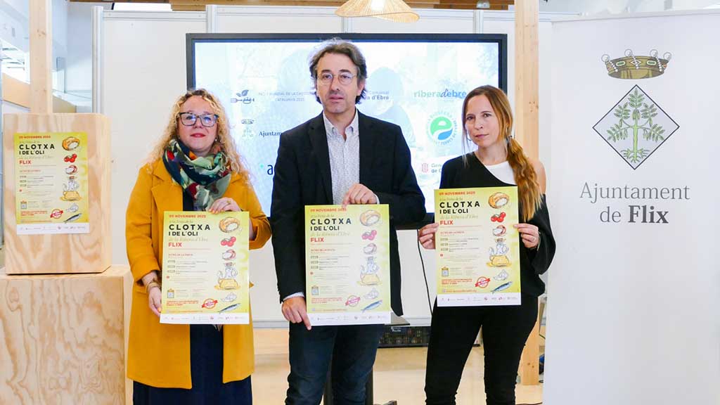 Aquest divendres, 24 d’octubre, el Mercat Municipal de Flix ha acollit la presentació de la Festa de la mà del president del Consell Comarcal, Francesc Barbero; la consellera de Turisme, Vanessa Serrano; i la regidora de Turisme de Flix, Cristina Ferrús. El president del Consell Comarcal, Francesc Barbero, ha destacat la importància de l’oli en aquesta edició: “La clotxa no s’entén sense l’oli, un dels ingredients bàsics, i enguany li hem volgut donar un protagonisme afegit i esperem que, a partir d’enguany, la Festa de la Clotxa de la Ribera d’Ebre sigui també un recorregut pels olis de la comarca”. Barbero ha afegit que la Ribera d’Ebre “és l’única comarca de Catalunya que té dues Denominacions d’Origen Protegides (DOP), on, a més a més de la DOP Terra Alta i DOP Siurana, tenim moltes zones productores en varietats singulars” i que l’objectiu enguany és “posar també l’oli en valor al llarg de les jornades gastronòmiques”.
