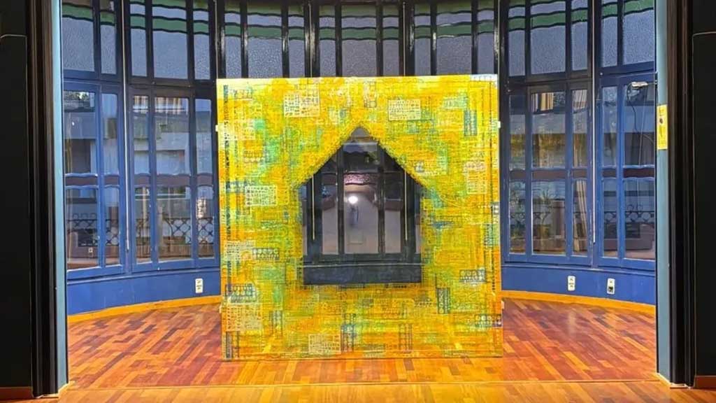 Obra dels arquitectes David Oliva i Elisenda Planas (Sp25 Arquitectura), Anhel és una obra que dona forma als somnis de qui imagina una llar. Com una memòria col·lectiva de l’ofici d’arquitecte, la peça es construeix amb centenars de plantilles de dibuix tècnic: fragments d’ofici, eines de projecte. Superposades, aquestes plantilles de colors vius configuren una superfície vibrant que juga amb la llum, la transparència i la repetició.