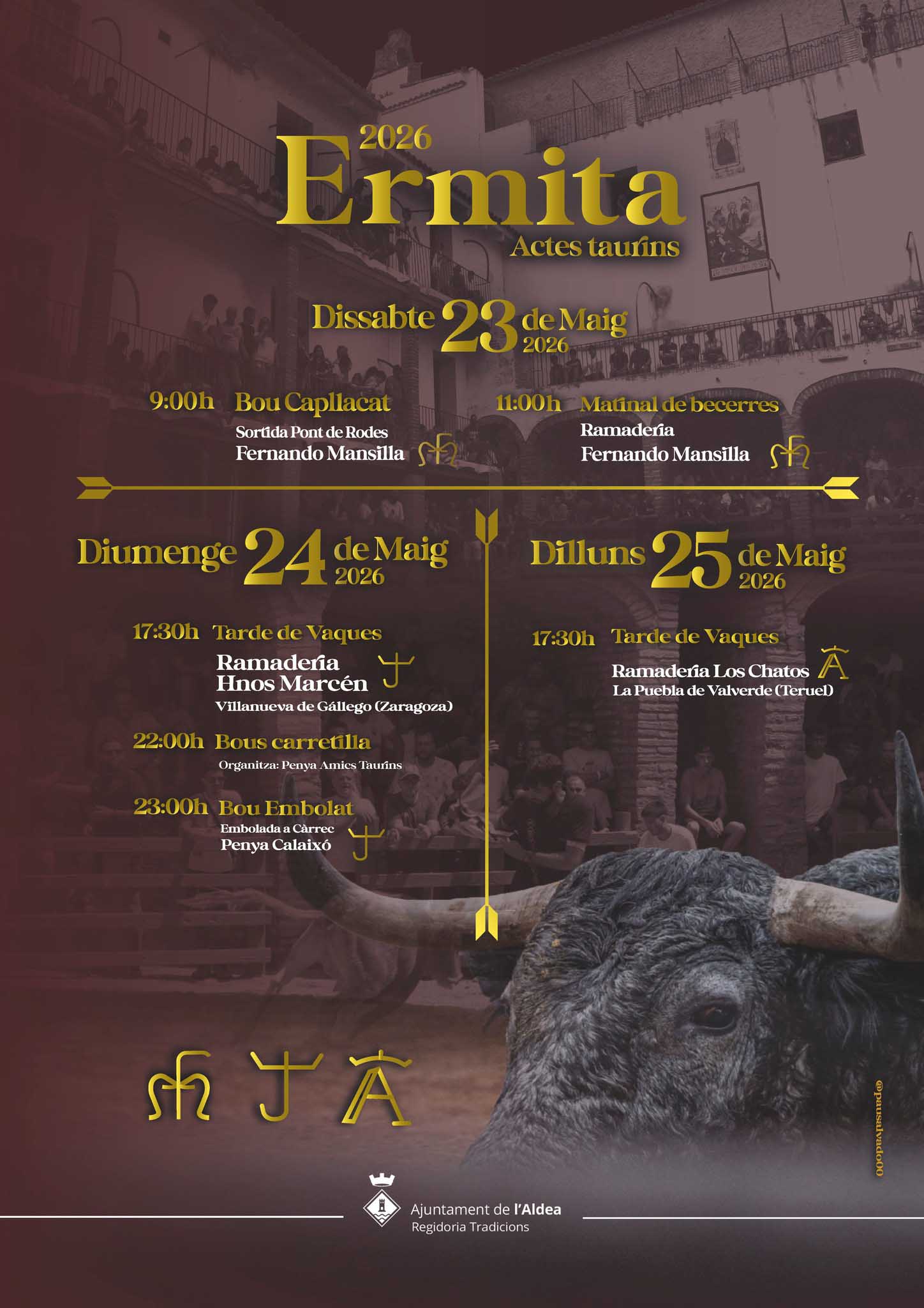 La plaça de bous de l’Ermita, amb més de dos-cents anys d’història, va acollir diumenge l’acte oficial de presentació dels cartells dels actes taurins de les Festes de l’Ermita i de les Festes Majors 2026 de l’Aldea, així com de les ramaderies que hi participaran.