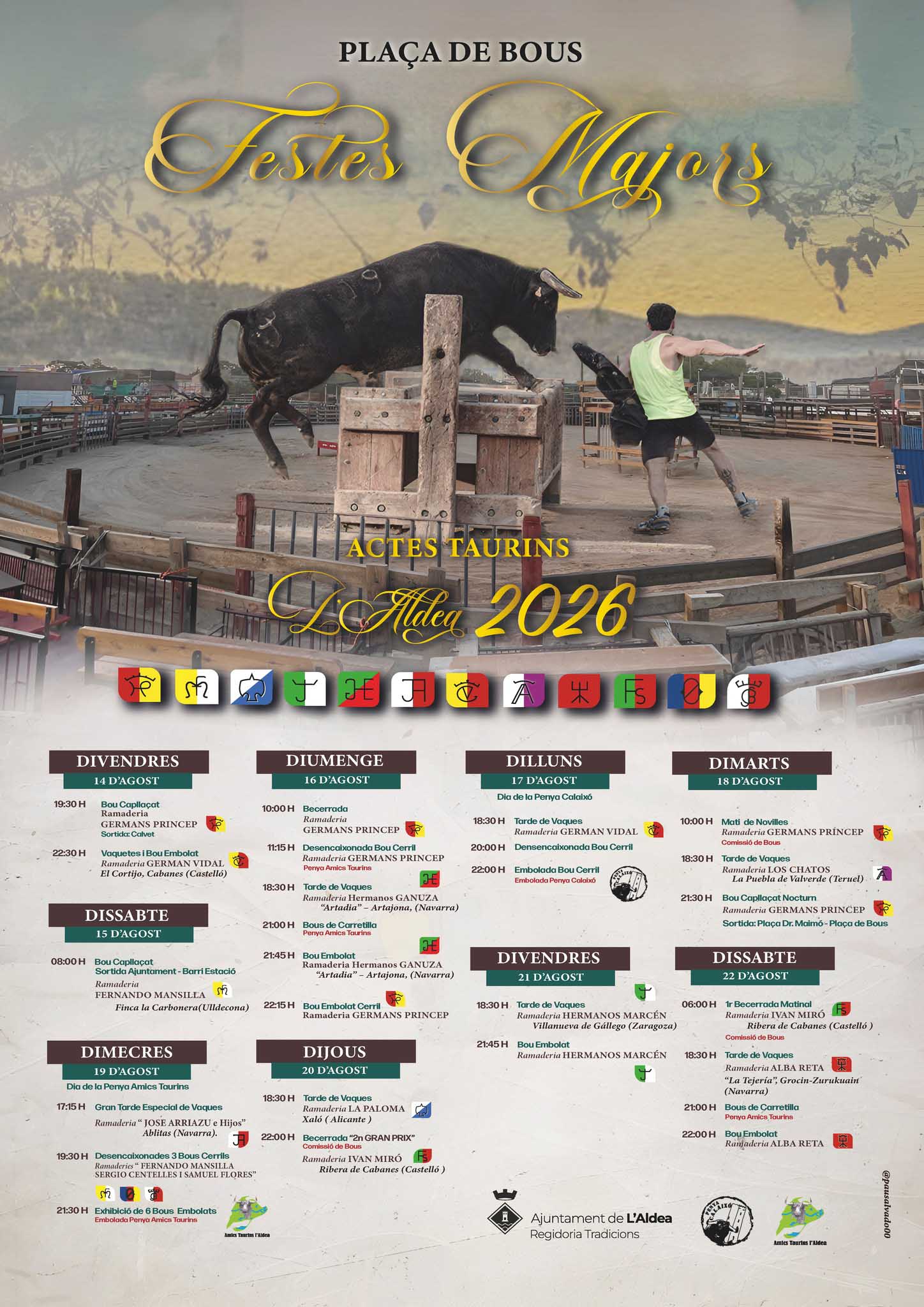 L’acte va ser conduït pel membre de la Comissió de Bous, Gaspar Franch, i va comptar amb la presència de l’Alcalde de l’Aldea, Xavier Royo, el Regidor de Tradicions Pepe Caballé i el Regidor de Festes Josep Franch. Durant l’esdeveniment es van desvetllar els cartells oficials que anunciaran els diferents actes taurins programats en el marc de les pròximes Festes Majors.