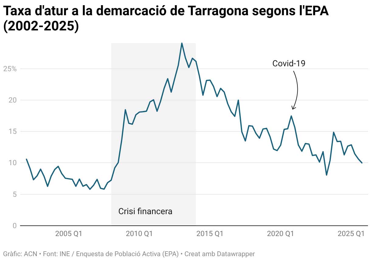 L’atur baixa en 2,67 punts a la demarcació de Tarragona en l’últim trimestre del 2025 fins al 10%