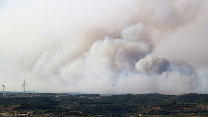 Tot i les condicions meteorològiques, amb vent i altes temperatures, els Bombers han aconseguit conduir el foc cap a una zona de camps, a tocar de la carretera. Els Agents Rurals estan perimetrant la zona afectada i els Bombers s’han distribuït en una àrea de 200 hectàrees per fer front al foc. Les flames han afectat un parc eòlic. El foc afecta el paratge de les Camposines.