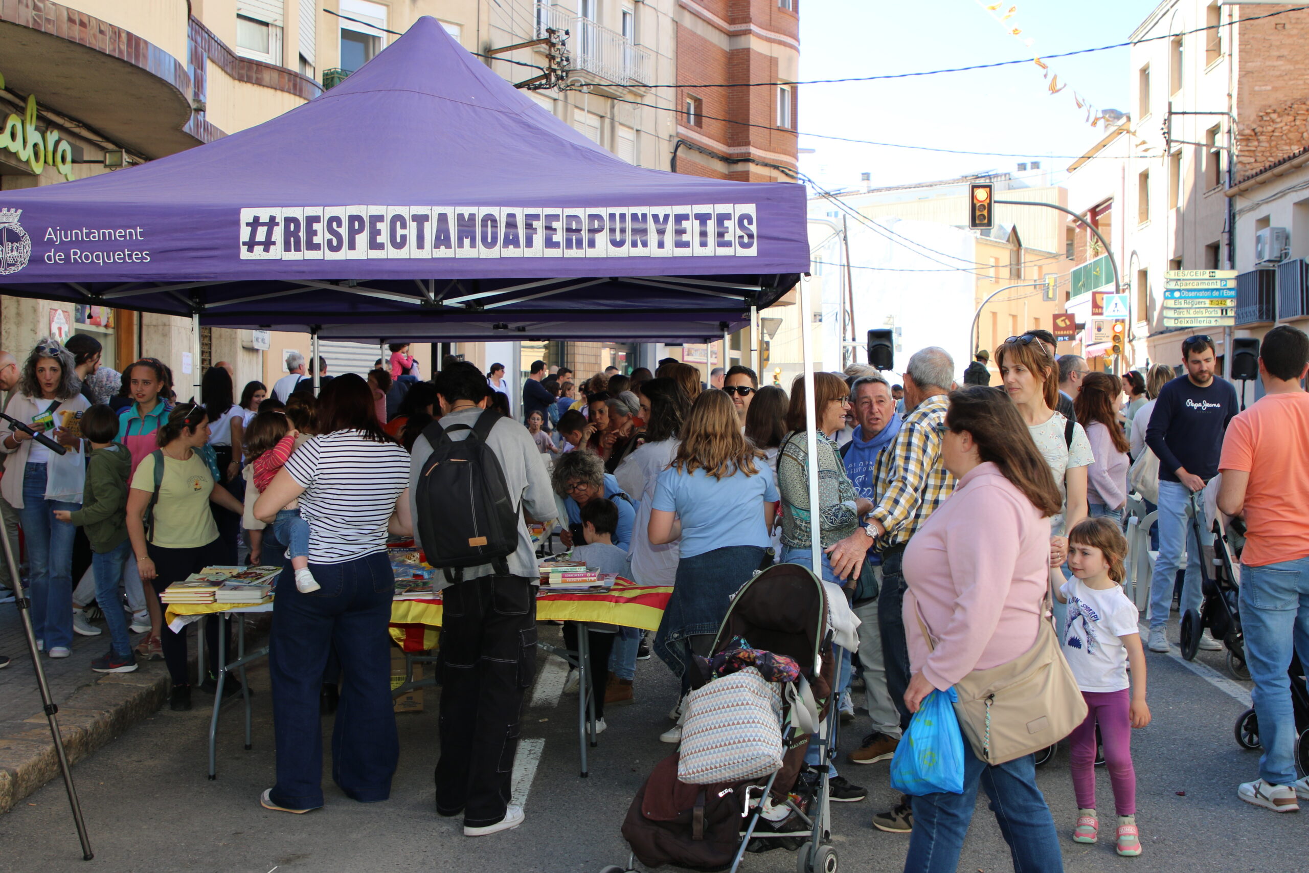 Desbordant, esplèndid i captivador. Roquetes ha viscut aquest dimecres 23 d’abril una Diada de Sant Jordi multitudinària, amb més de 2.500 persones que han omplert a vessar un carrer Major transformat en el gran aparador cultural del territori. Entre roses i llibres, el bullici tant del públic local com vingut d’arreu de les Terres de l’Ebre ha inundat la ciutat, submergida en novel·les i relats d’amor, princeses, dracs i cavallers, al llarg d’una intensa jornada amb propostes variades per a totes les edats i gustos.