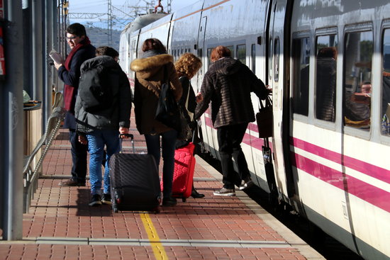 Una cinquantena d’usuaris estrenen el primer tren ràpid Tortosa-Barcelona que arriba a Sants amb retard