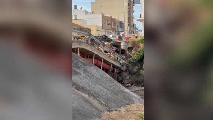 La part sud del pont de l’entrada principal de la Ràpita (Montsià) s’ha enfonsat aquesta matinada pels aiguats que van afectar les Terres de l’Ebre el 12 d’octubre passat. L’incident no ha provocat danys personals ni afectacions greus, segons el consistori ebrenc. Efectius dels Bombers i operaris municipals s’han desplaçat a la zona per valorar la situació. El govern municipal de la Ràpita ha anunciat que “en els propers dies” s’enderrocarà l’estructura, abans de construir-ne una de nova.