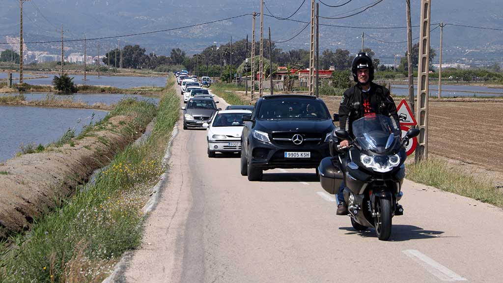 Els manifestants s’han concentrat aquest matí davant les instal·lacions esportives del pavelló municipal de la Ràpita des d’on han arrencat la marxa lenta. Encapçalats per un tractor i motocicletes, han recorregut els carrers del centre del municipi fent sonar els clàxons i lluint banderes de denúncia. Tot seguit, la caravana ha marxat per la carretera de Poble Nou del Delta fins a arribar al pont del Riu Vell. En aquest indret, els vehicles han tallat la via durant aproximadament uns quinze minuts. Per acabar la protesta, el col·lectiu ha desplegat una creu vermella de tela damunt del pont per senyalitzar un dels punts “crítics” de la via.