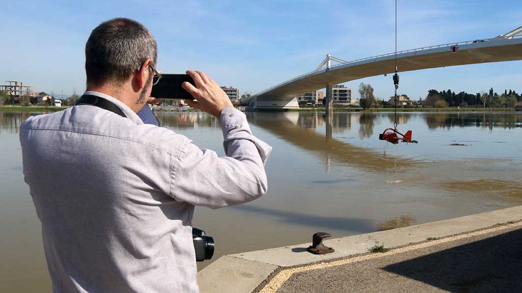 Una de les novetats que s’ha incorporat enguany també als estudis posteriors és l’assaig “experimental” per intentar quantificar el trànsit de sediments més grans, com arenes i graves, que són arrossegats pel llit fluvial durant les avingudes juntament amb els llims en suspensió. Amb l’ajut d’un torpede metàl·lic de 70 quilos amb una bossa dirigit per un camió grua, els tècnics han intentat atrapar mostres, a diverses distàncies de la llera i profunditats, en punts com l’embarcador de Sant Jaume d’Enveja.